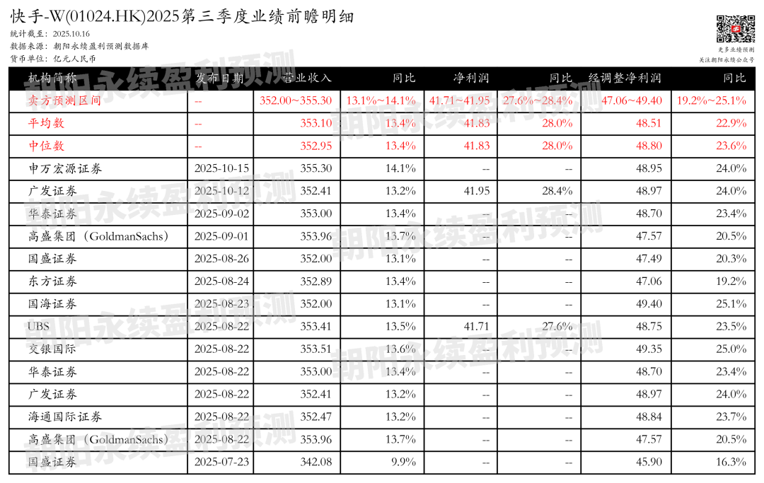 截至2025年10月16日,根据朝阳永续季度业绩前瞻数据: